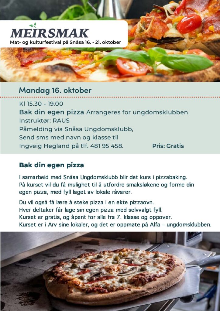 I samarbeid med Snåsa Ungdomsklubb blir det kurs i pizzabaking.