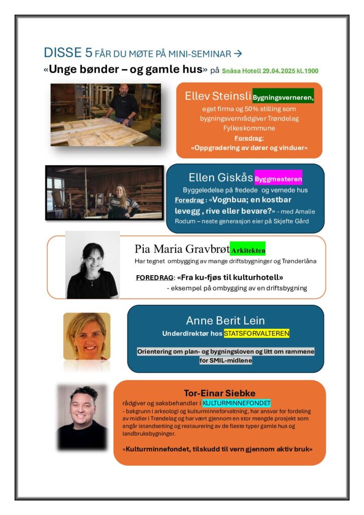 Seminaret er spesielt godt egnet for unge eiere av eldre bygninger, men det er ingen aldersgrense så ALLE er velkomne ! – HUSK Å MELD DEG PÅ !