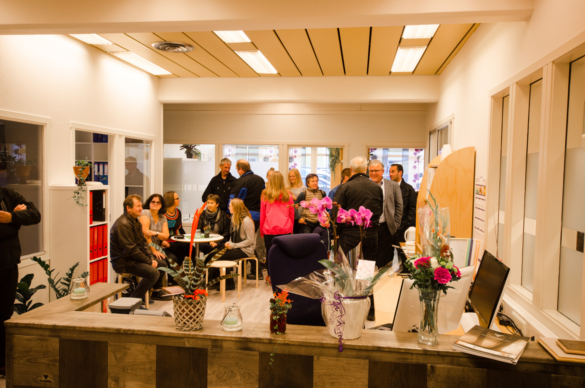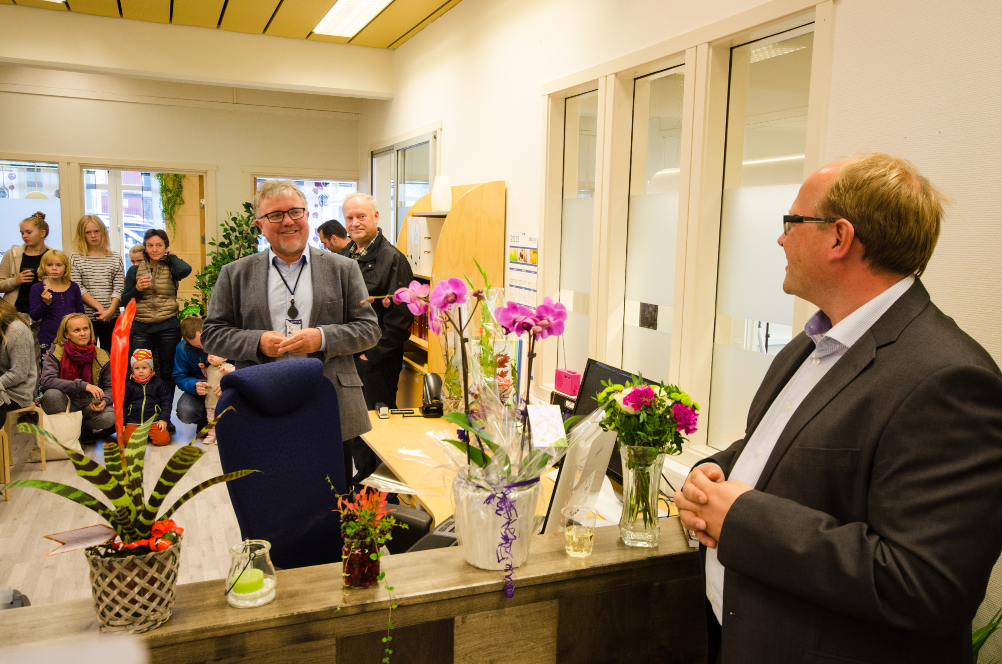 Det var veldig fin stemning med de mange fremmøtte til den offisielle åpningen av næringsparken, og Bård Landsem var raus med ros til Nikolai Kjenstad som eier bygget- Legging av nytt gulv og kontorinndeling har gått i rekordfart. Til stede var også gammel- banksjefen, Gunnar Thorsen. Han fortalte at det kostet 4.5 millioner kroner å bygge Sparebanken Midt- Norges filial på Snåsa i 1980. Thorsen var ansatte nummer 10 i banken, blant en stab som etterhvert bestod av 14 ansatte. Thorsen fortalte at han er imponert over hva næringslivet på Snåsa har fått til og at det er flott å kunne samles i et felles miljø, noe som er positivt for hele bygda.